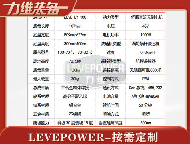 特種橡膠履帶底盤(pán)長(zhǎng)1071mm,履帶底盤(pán)寬809mm,履帶底盤(pán)高300mm,無(wú)線(xiàn)遙履帶底盤(pán)搭載48V1KW直流無(wú)刷永磁電機(jī),RV50渦輪蝸桿減速機(jī),動(dòng)力更強(qiáng)。履帶底盤(pán)采用48V80AH鋰電池,續(xù)航時(shí)間更長(zhǎng)。四驅(qū)履帶越野底盤(pán),動(dòng)力更強(qiáng)。爬樓履帶機(jī)器人底盤(pán),前后擺臂設(shè)計(jì),不僅外觀漂亮,越野性能更強(qiáng),爬樓性能更穩(wěn)定。履帶底盤(pán)框架采用鋁合金箱體焊接而成,底盤(pán)承載力大,是一款全地形履帶底盤(pán)。